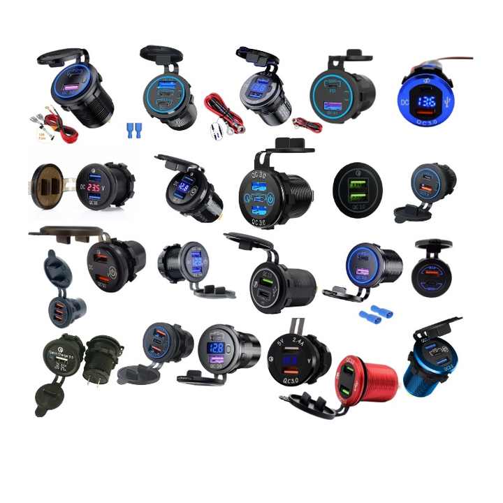 Cargador de Coche OEM Personalizado con Carga Rápida QC3.0 de 20W, Tipo-C + Tipo-A, Montaje en Panel, Puerto USB de 12V/24V, Material Resistente al Fuego