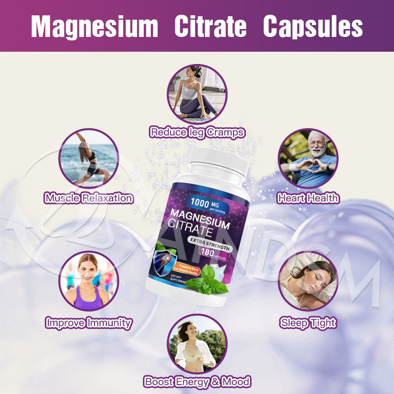 Cápsulas de Citrato de Magnesio Sin Azúcar, Servicios Personalizados OEM, Relajación Muscular, Alta Absorción, Cápsulas Naturales