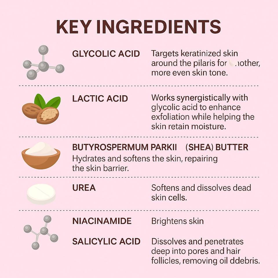 Ingrediente:ácido glicólico, ácido láctico, urea, niacinamida, ácido salicílico