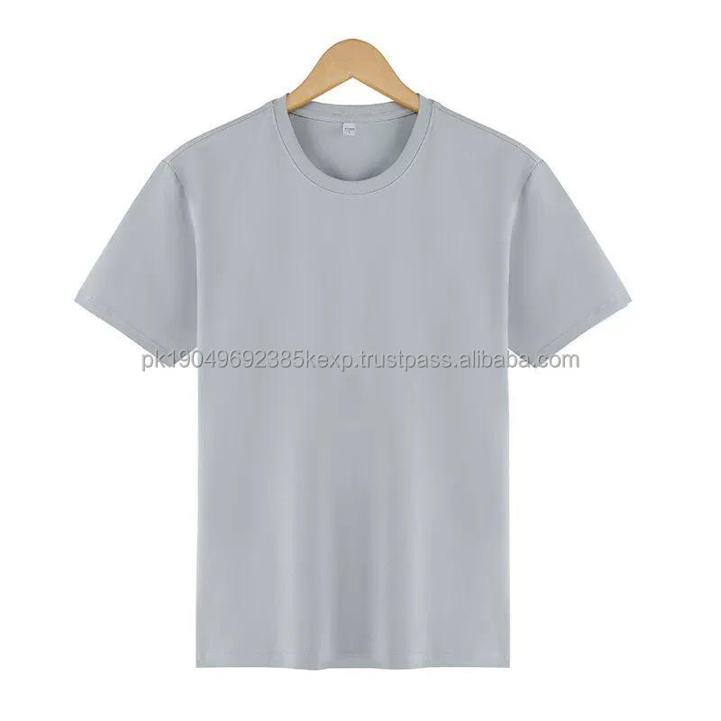 Camiseta de Manga Corta con Cuello Redondo, 100% Algodón, Color Sólido, Teñida, para Hombre y Mujer, Verano, Personalizable OEM