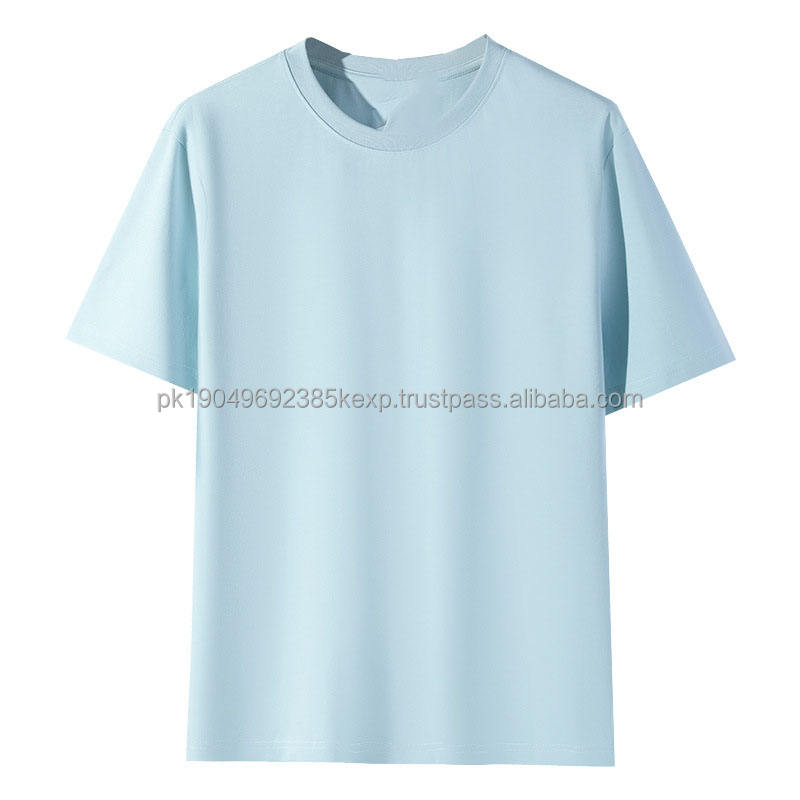 Camiseta de Verano Personalizada OEM, Cuello Redondo, Algodón Romano de Alta Gama, Color Sólido para Hombre, Transpirable, Sin Plancha, Manga Corta