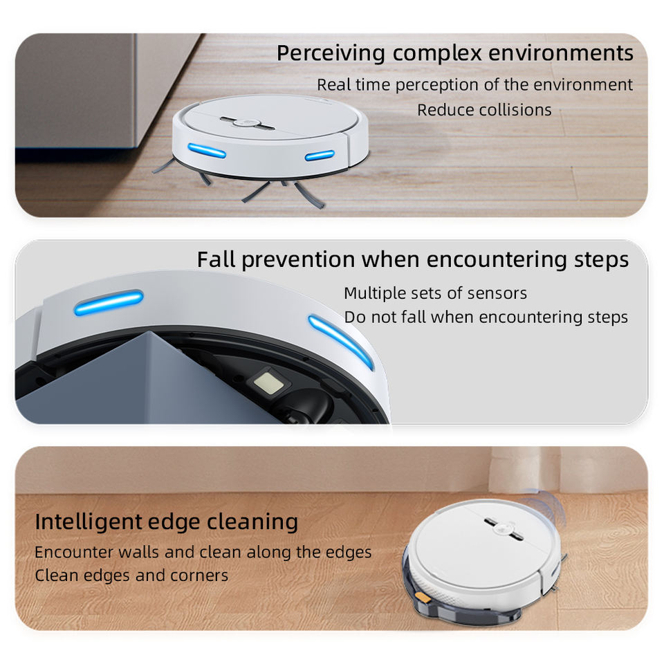 Multi-función:3 EN 1 vacío y barrido y fregona, limpieza auto, limpieza del borde, limpieza del punto