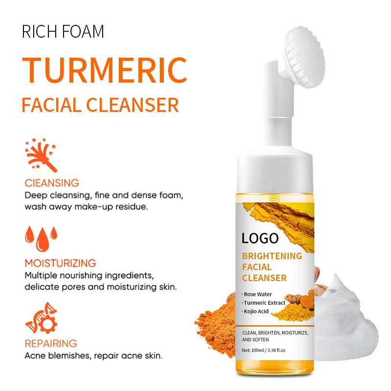 Productos de Cuidado de la Piel de Limpieza Profunda OEM, Cepillo Facial Limpiador, Espuma Limpiadora Facial de Cúrcuma para el Acné