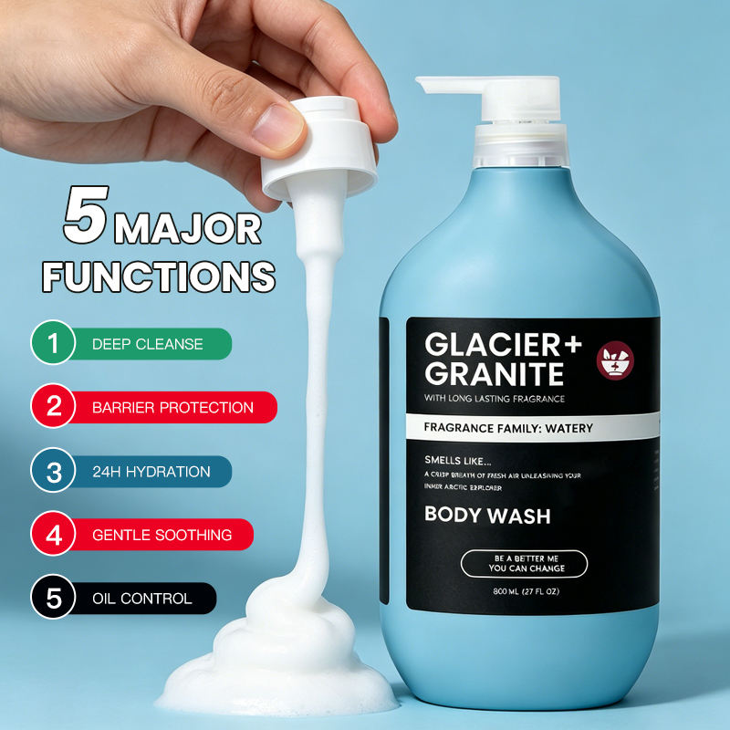 Gel de Ducha OEM con Aroma a Granito Glaciar, Limpieza Profunda, Control de Grasa, Fragancia Duradera, Hidratación 24H, Protección de la Barrera Cutánea