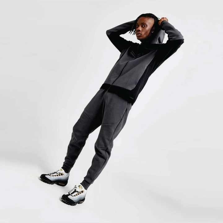 Chándal de lana técnica para hombre de diseño OEM 69% algodón 31% poliéster Sudadera con capucha y cremallera completa Joggers pantalones de chándal negro para invierno estampado