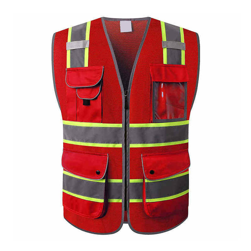Chaleco de seguridad reflectante de diseño OEM, color verde de alta visibilidad con cremallera frontal, antiestático, ignífugo, ropa táctica.