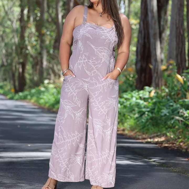 Mono Largo Informal Holgado con Tirantes y Estampado Aloha para Mujer, Diseño OEM, Mono Largo de Rayón Personalizado de Lujo