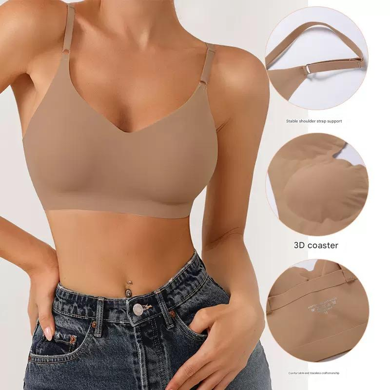 Sujetador deportivo de punto sin aros para mujer, talla grande, con realce trasero, cómodo y transpirable, venta al por mayor directa de fábrica OEM, con logo.