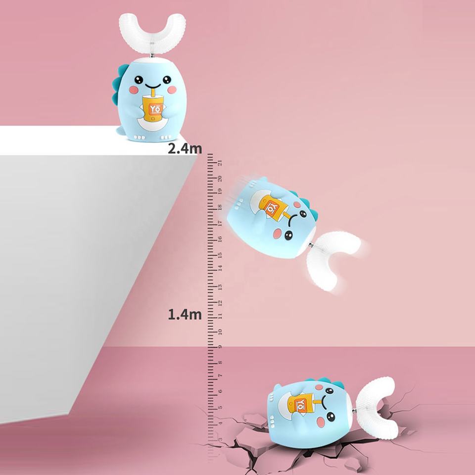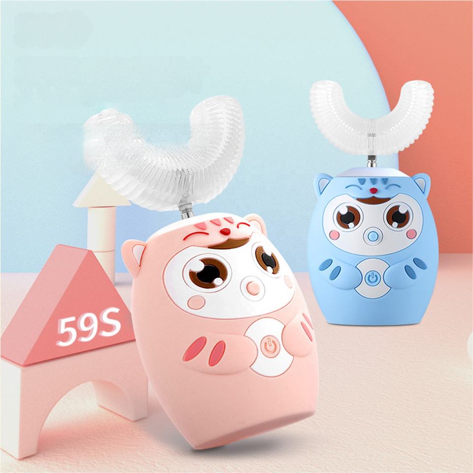 Venta directa OEM 360 ° Cepillo de dientes eléctrico para niños en forma de U para bebés de 2-6-12 años Cerdas suaves de silicona en forma de U