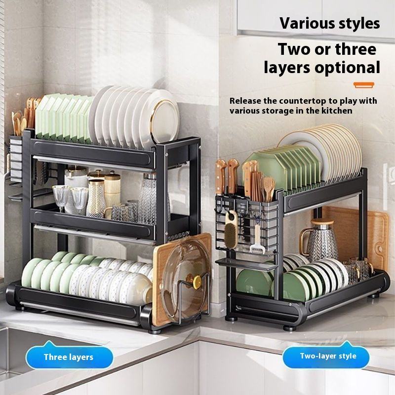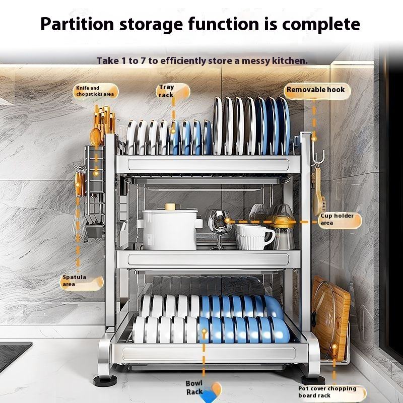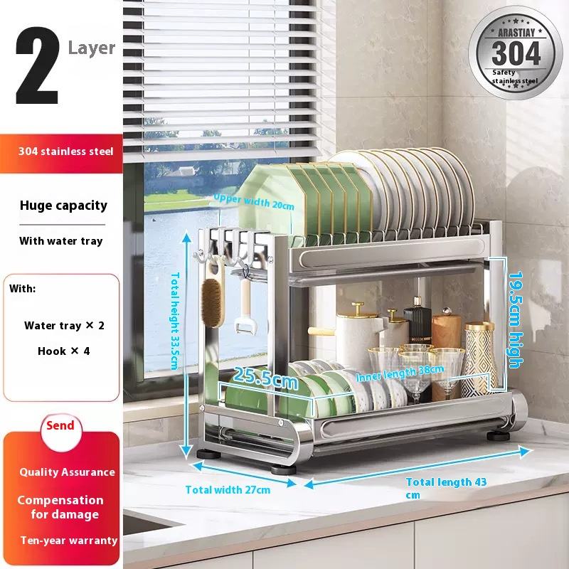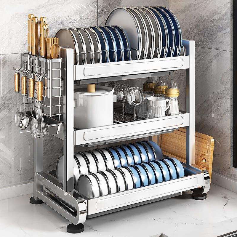 Escurridor de platos de cocina de acero inoxidable 304 Extra grande OEM para platos, cubiertos, cuchillos, tablas de cortar con escurridor