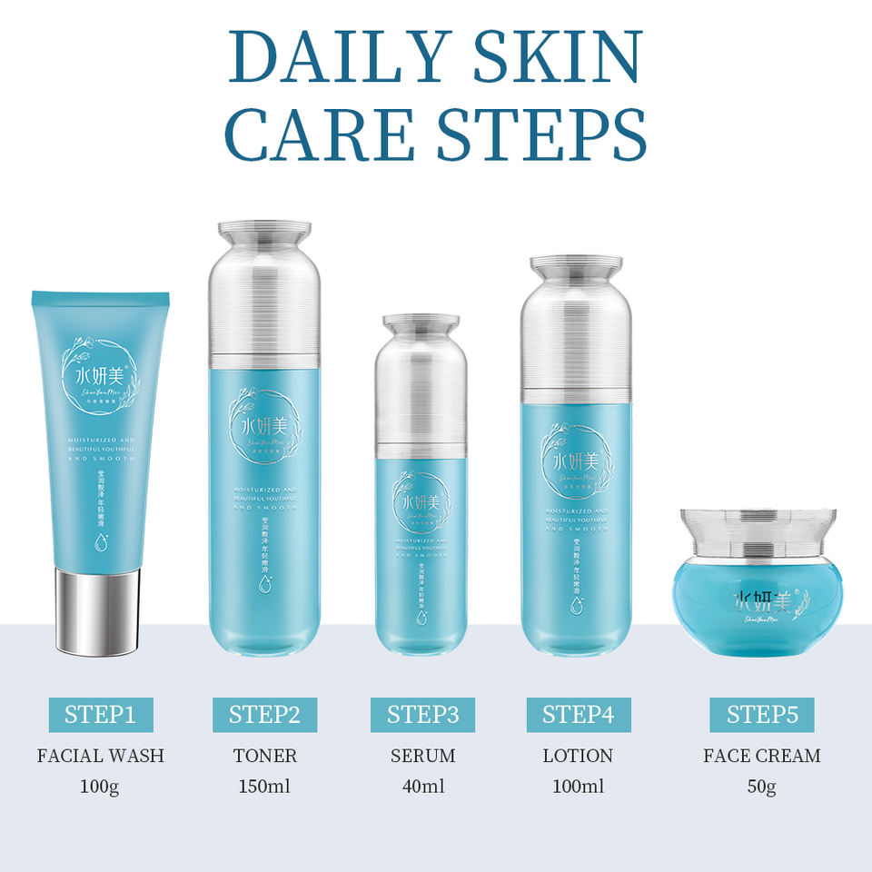 Juego de cuidado facial OEM, 5 uds., limpiador facial, tóner, crema para los ojos, juego de cuidado de la piel antienvejecimiento, productos, juego de cuidado facial
