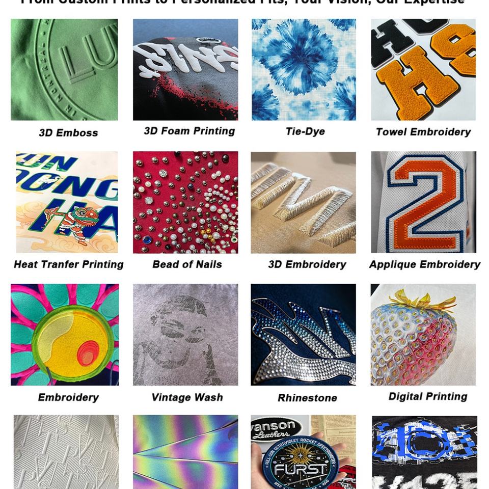 Bordado/Estampado/LAVADO/ArrugadoTécnicas