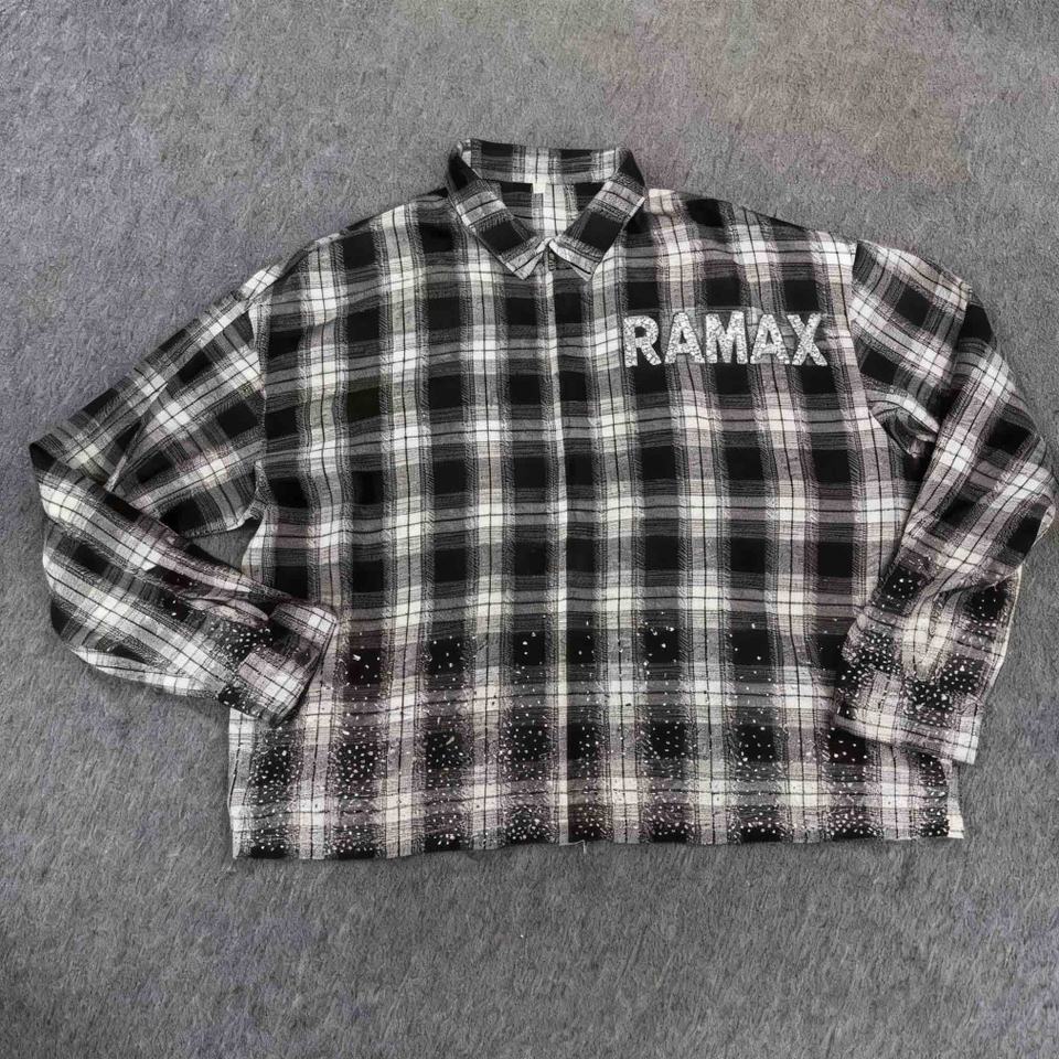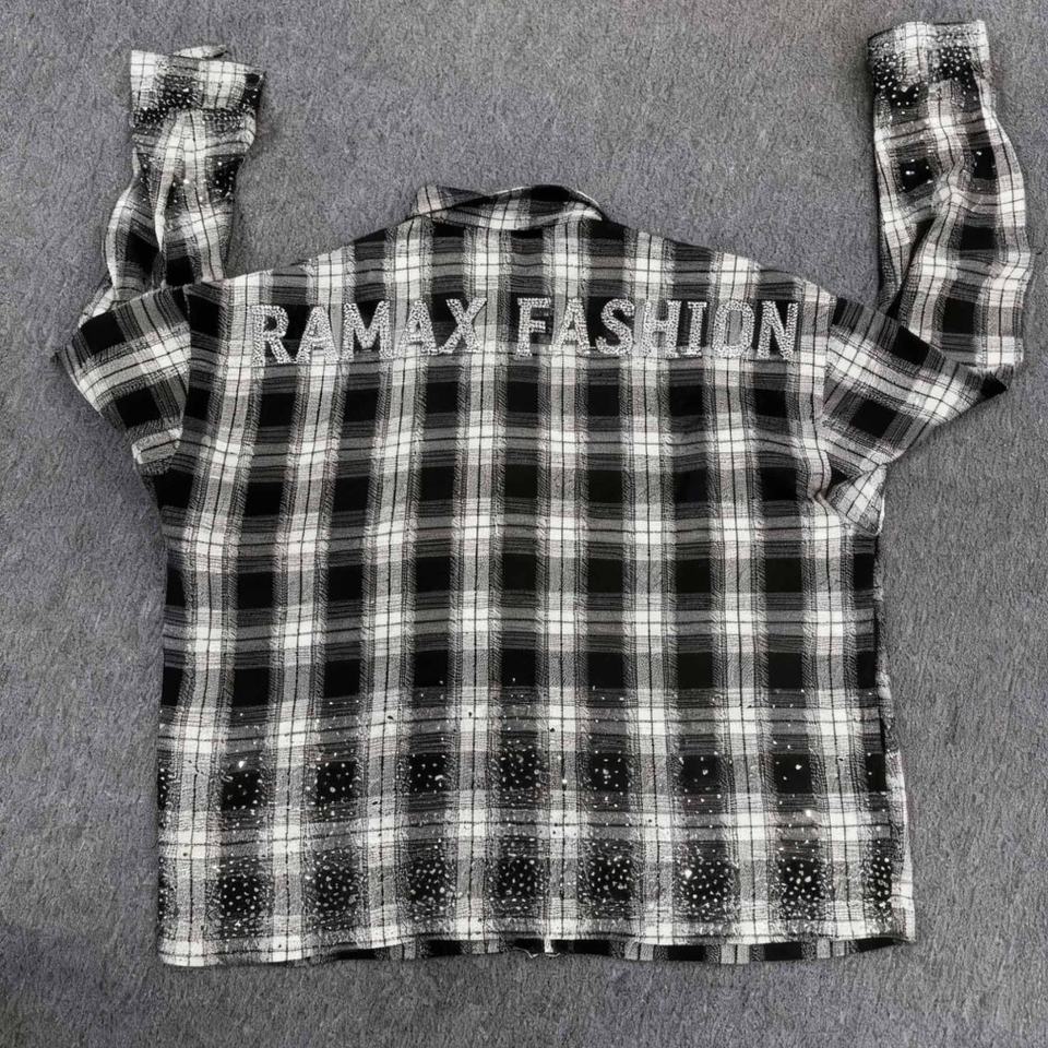 Camisa de Franela con Diseño de Rejilla de Diamantes de Imitación, Estilo Urbano Otoñal, Personalizada de Fábrica OEM, Oversize, Vintage, de Corte Cuadrado, Manga Larga, Secado Rápido, con Gráficos