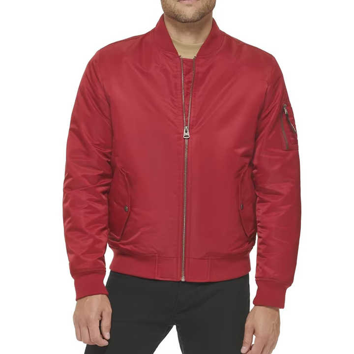 Chaqueta Bomber de Diseño Personalizado de Fábrica OEM, Estilo Urbano Vintage, Color Rojo, Material de Nailon y Poliéster, Chaquetas Bomber Personalizadas para Hombre