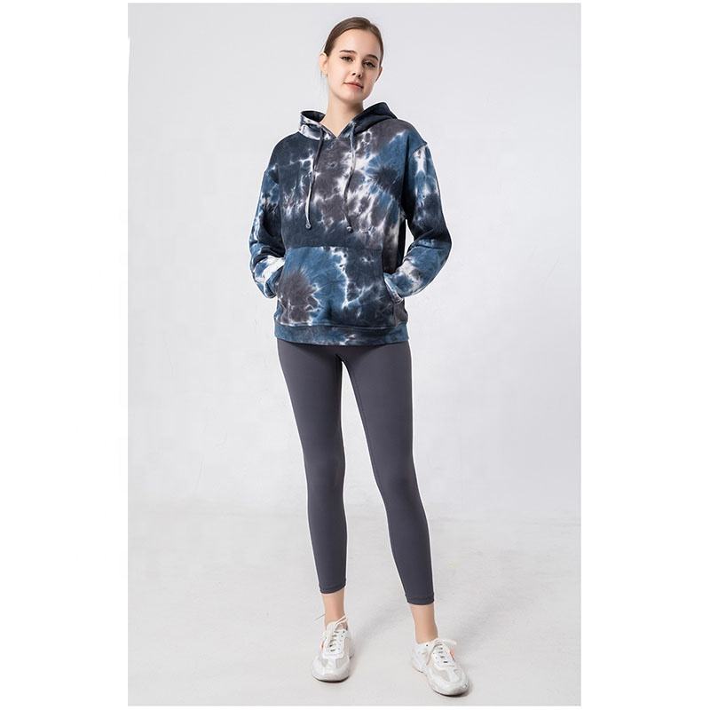 Sudadera con capucha de tinte de corbata personalizada de fábrica OEM para mujer, sudaderas con estampado de camuflaje a la moda, estilo deportivo largo, cultivo con capucha