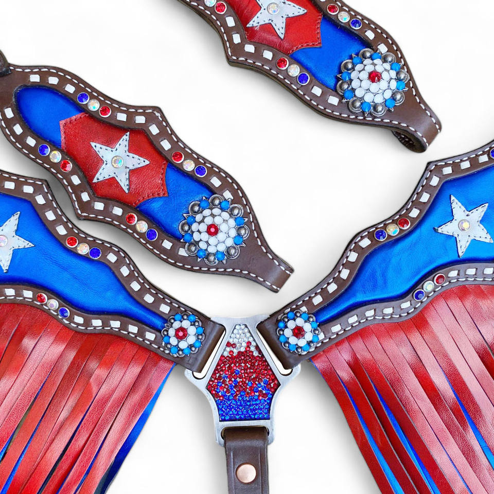 Western Horse USA Flag Fringe Headstall & Breastplate JuegoNombre del producto