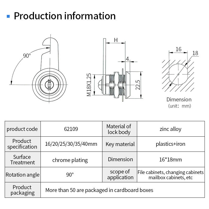 Cerraduras Tubulares Serie 103 para Gabinetes, Cajones, Buzones y Mesas, en Cromo, Varios Tamaños, Directo de Fábrica OEM
