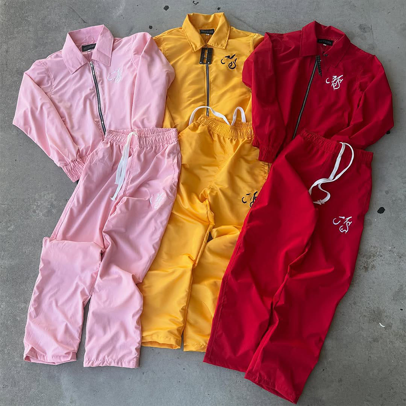 Ropa de entrenamiento ligera con logotipo bordado de fábrica OEM, chándal de gran tamaño de nailon con cremallera, conjunto cortavientos a prueba de agua para unisex