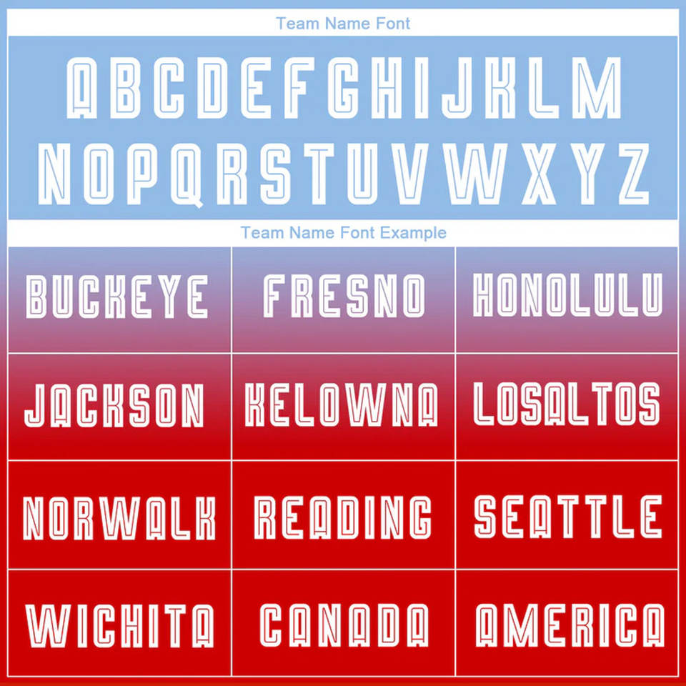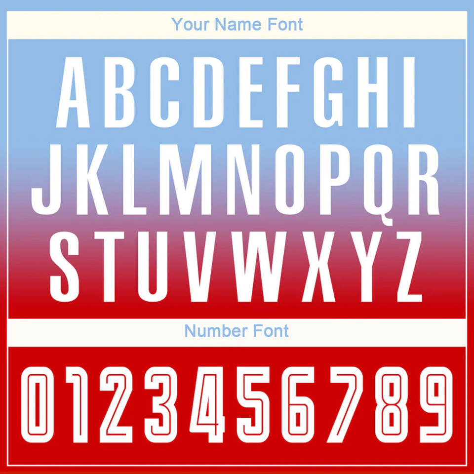 Sólido, Imprimir, Carta, Bordeado, Bloqueo de color, Color del degradado, Nombre del jugador, Nombre del equipo, Números de equipo