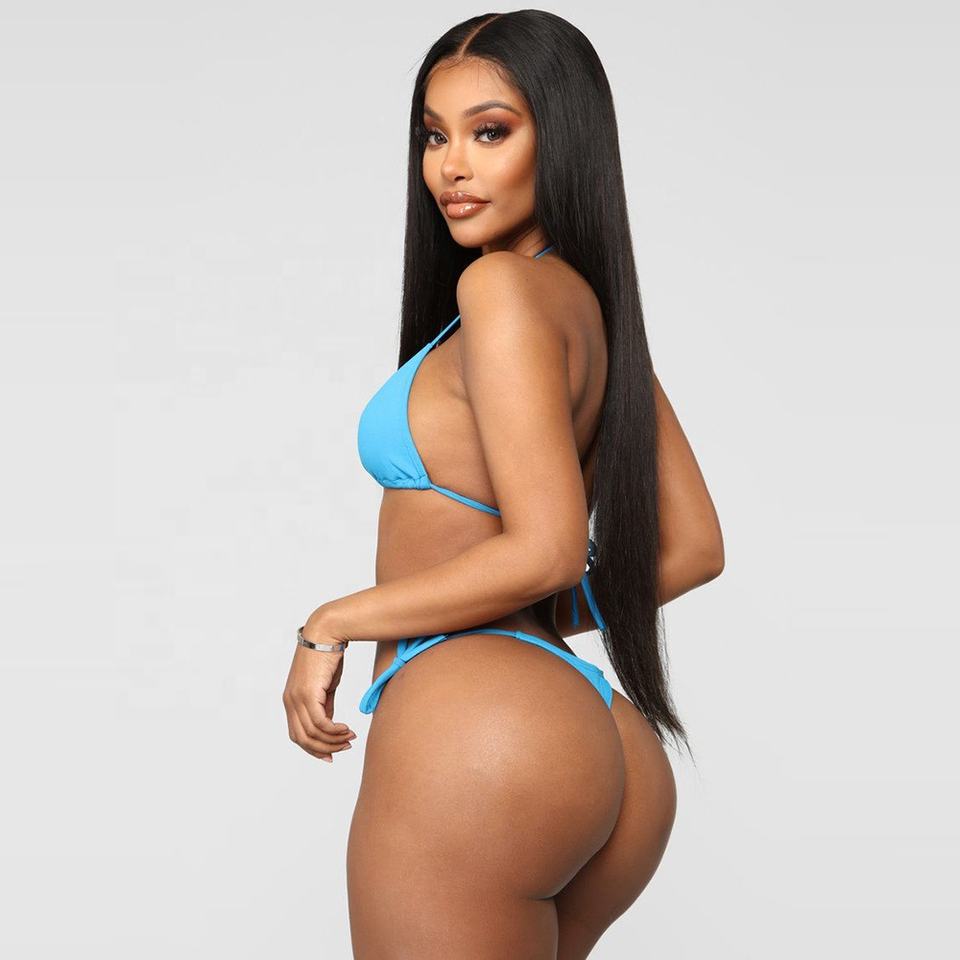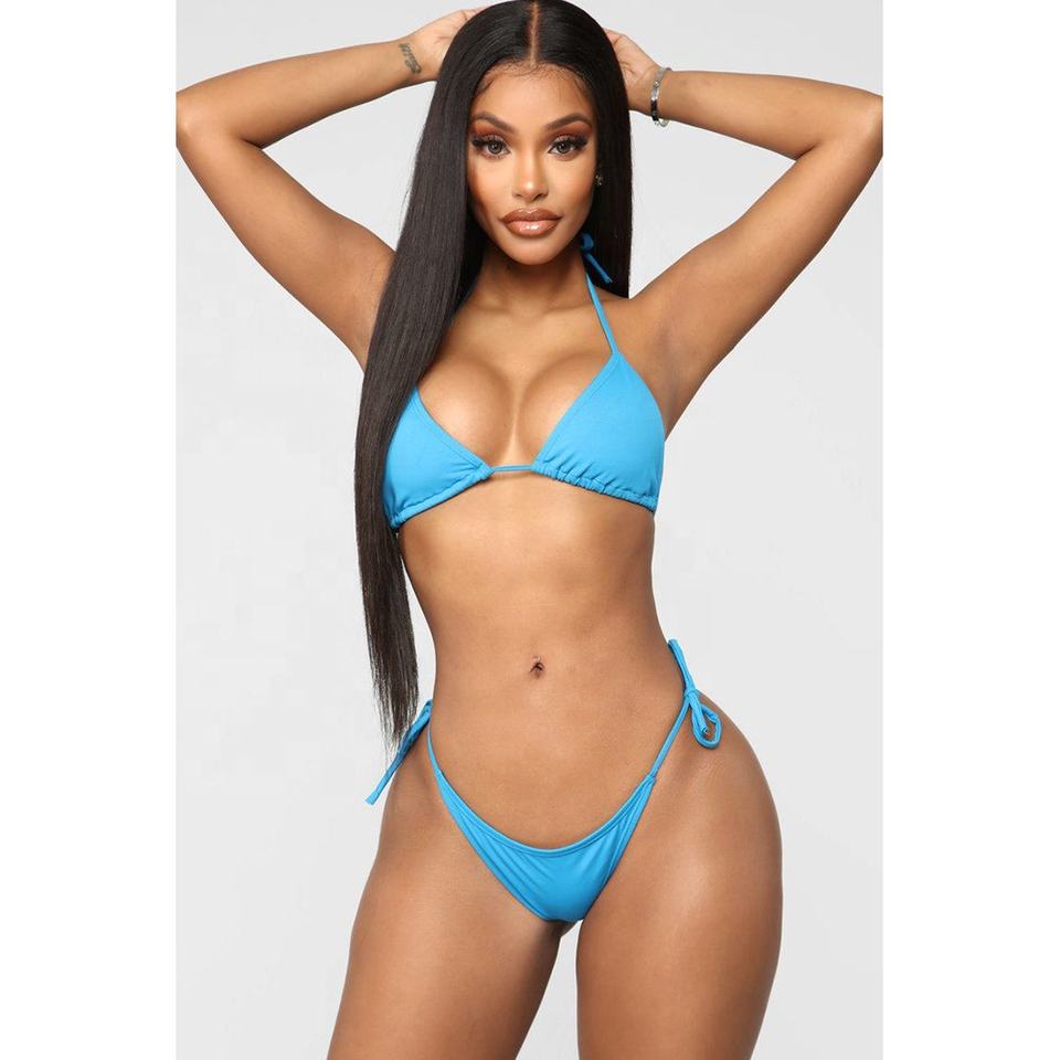 Traje de baño de dos piezas sin espalda para mujer, bikini triangular sexy en talla XS, estilo micro casual para playa, con logo personalizado, OEM