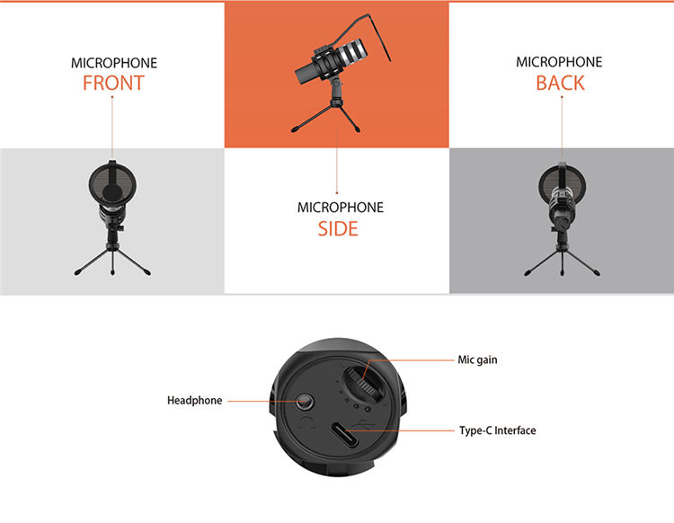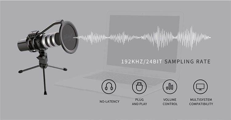 Micrófono de Condensador USB con Cable para Juegos, 20hz-20Khz, para Shure, Venta al Por Mayor de Fábrica OEM