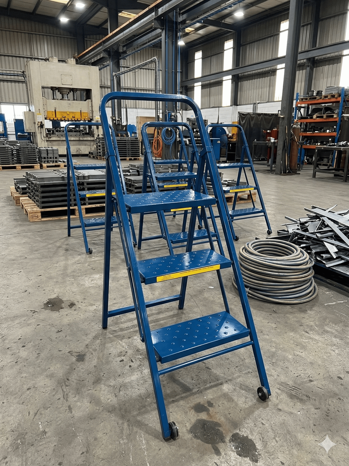 Escalera Plegable de Acero de 3 Peldaños OEM, Capacidad de 300 lb, Escalón Ancho Antideslizante, Uso Industrial y Doméstico