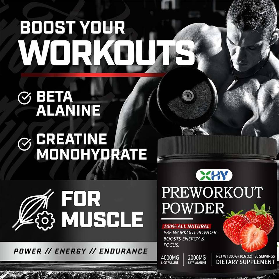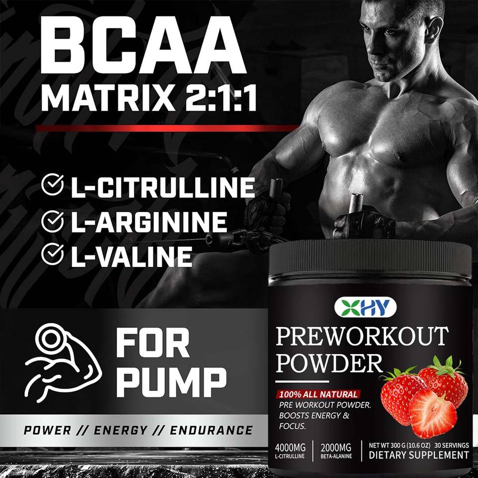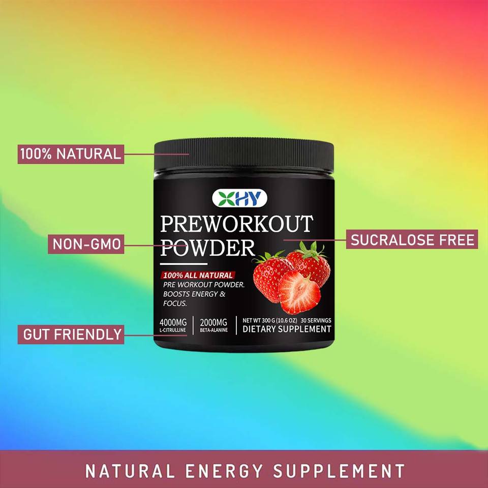 OEM Gorilla Mode pre-entrenamiento en polvo electrolitos suplemento de energía BCAA creatina Koffein sabor a fresa para la nutrición deportiva
