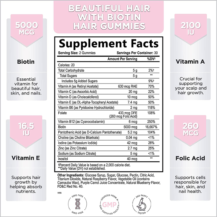 Function and Benefits:healthy hair, skin and nails, and energy metabolism