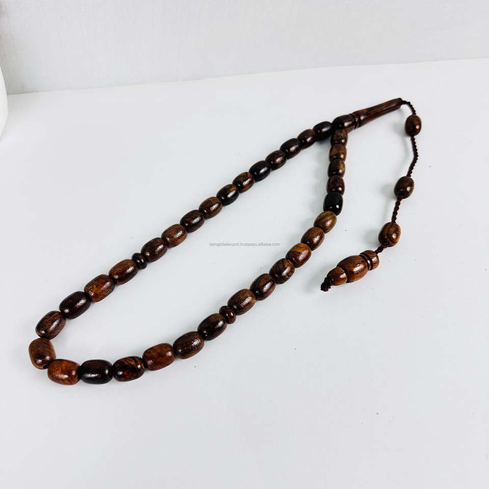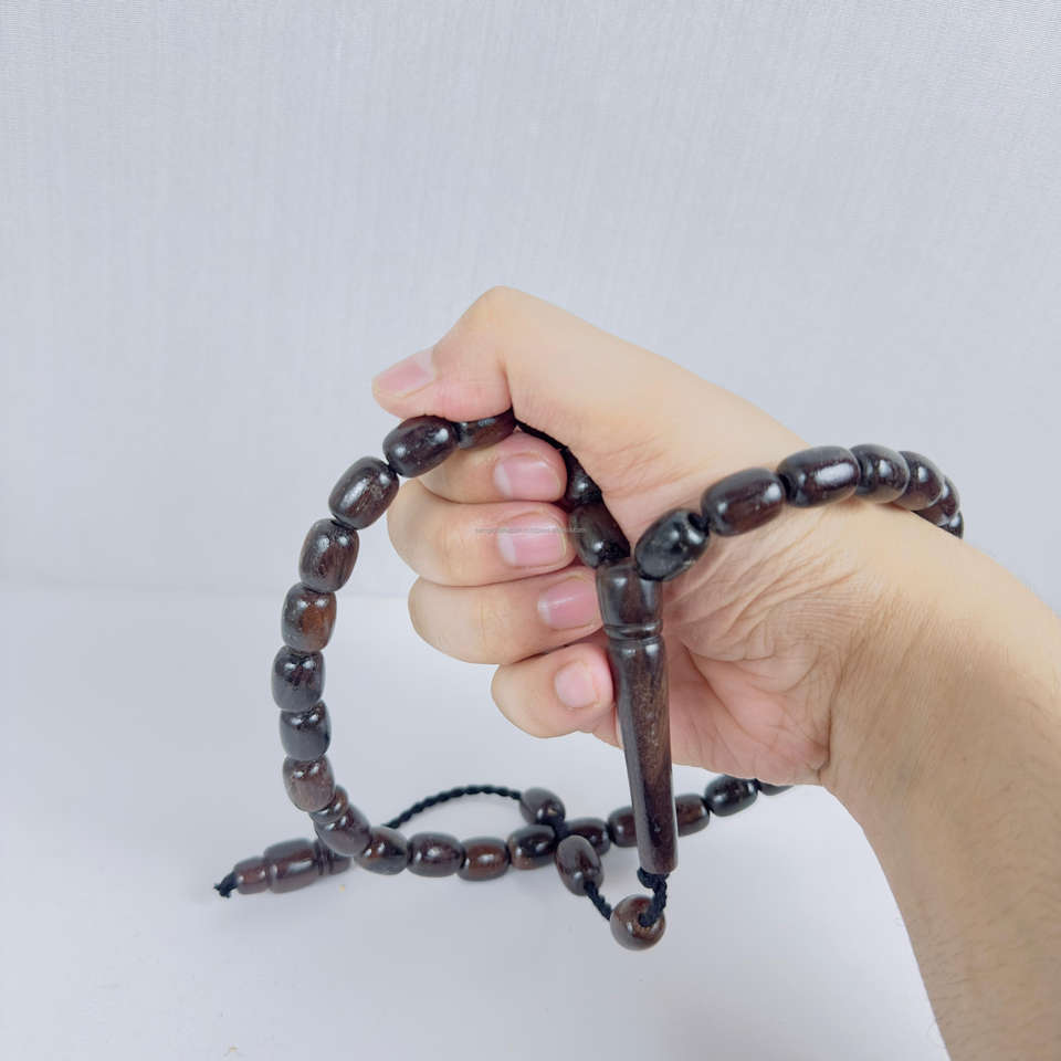 Tasbih Bismillah Pulido a Mano OEM, 33 Cuentas, Misbah Católico, Rosario Islámico de la Mejor Calidad, Madera de Ébano Negro para Oración