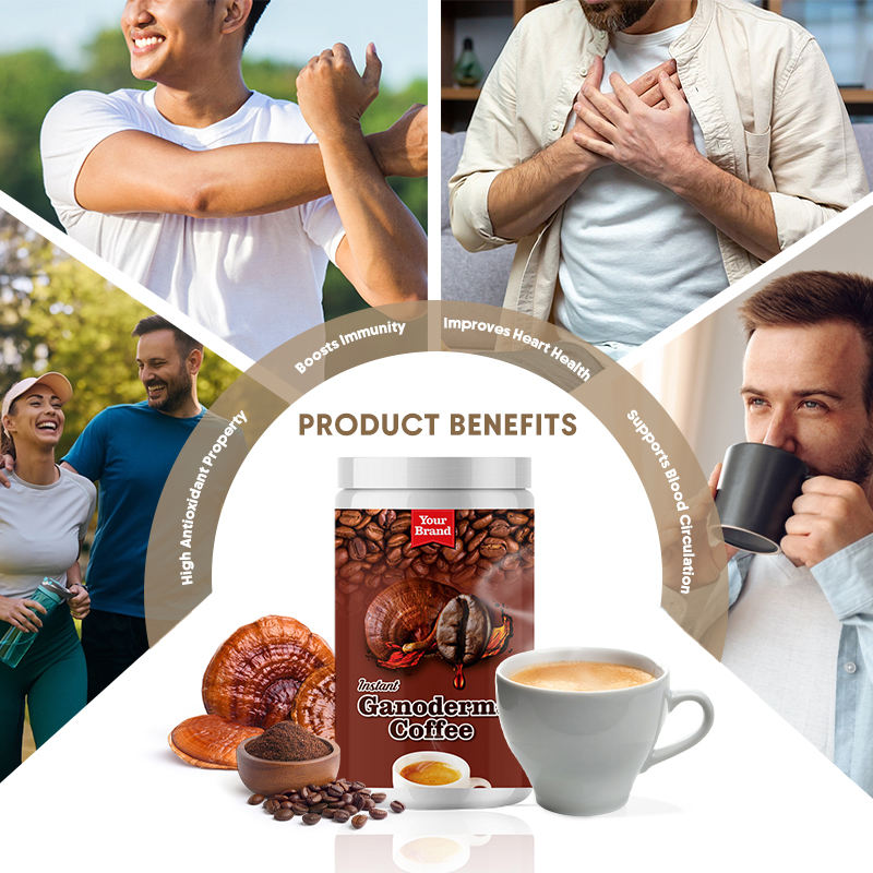 OEM saludable sabor a crema de café instantáneo ingredientes totalmente naturales de Ganoderma Lingzhi Maca seta caja de sabor suave