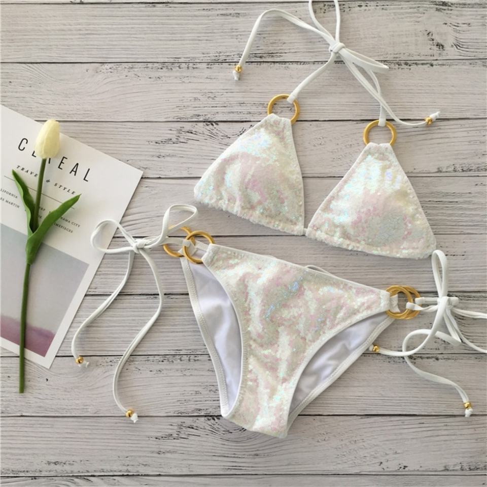 Traje de Baño Transparente de Poliéster con Estampado por Transferencia de Calor OEM, Sexy, de 1 Pieza, con Patrones Sólidos/de Puntos, Bikini con Tanga en V