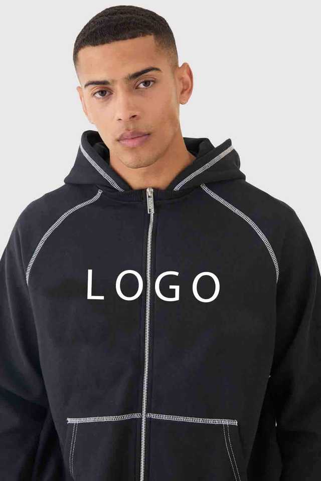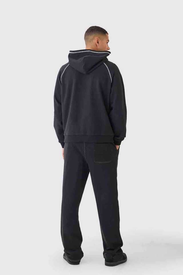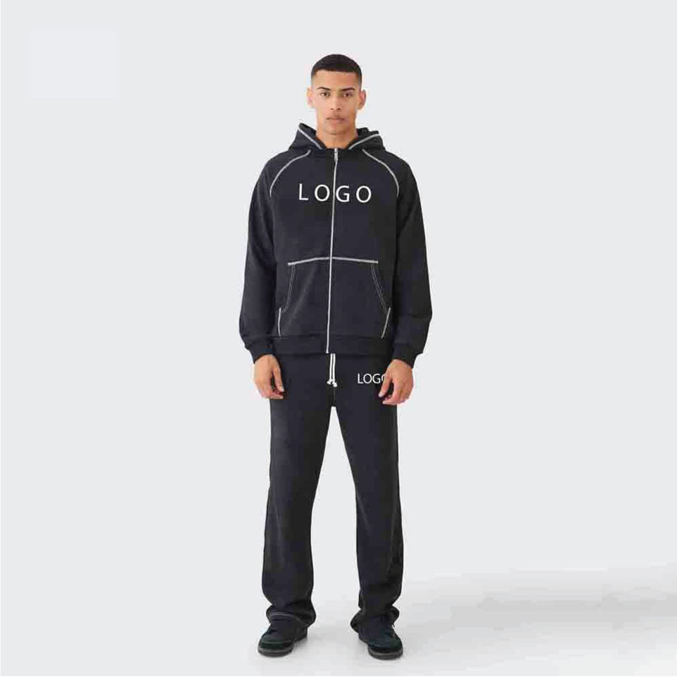 Conjunto de Sudadera con Capucha Oversize y Pantalones de Chándal para Hombre, con Cremallera, Mangas Raglán y Costuras en Contraste, Estilo OEM, para Deporte y Uso Diario