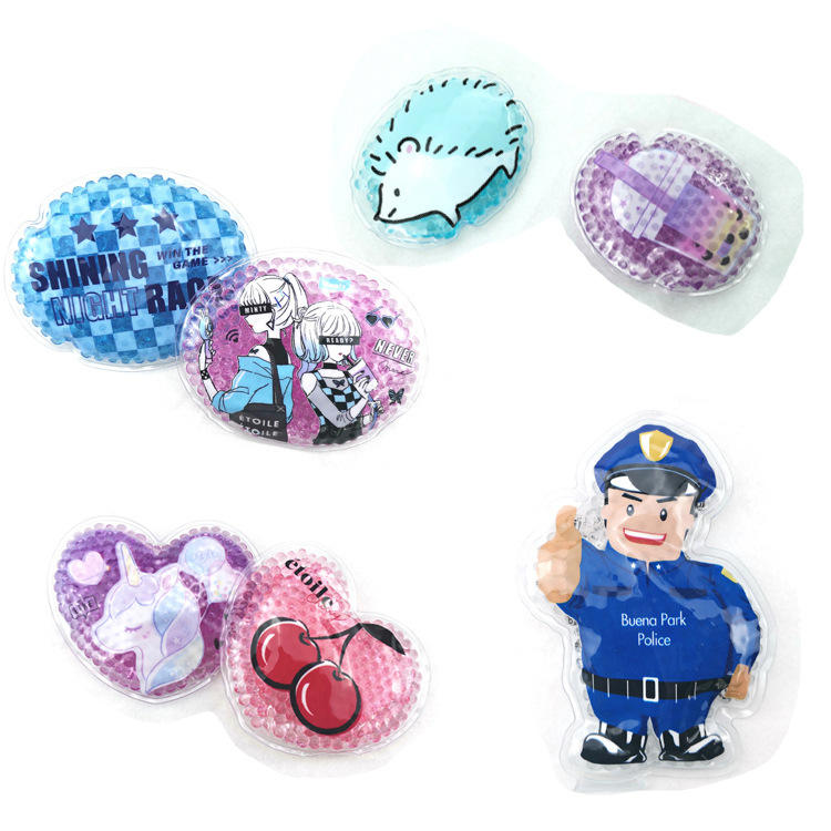 Bolsas de hielo suaves reutilizables de dibujos animados de alta calidad OEM, bonitas bolsas de hielo de gel frío y caliente para niños