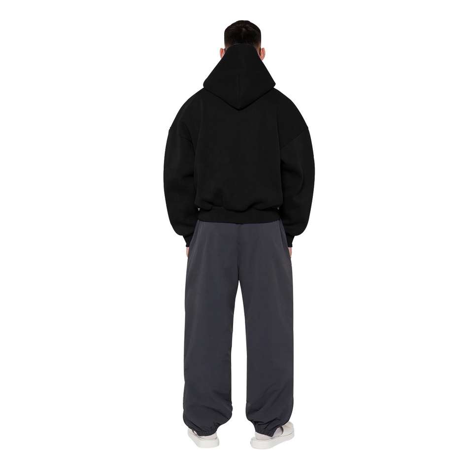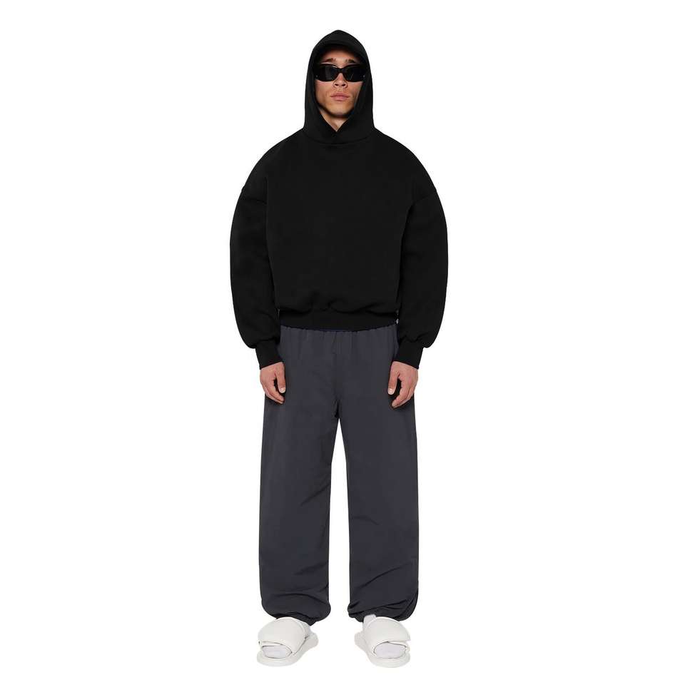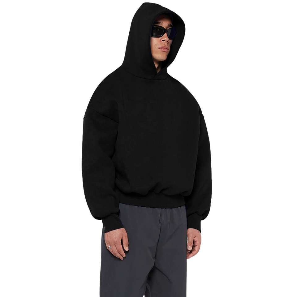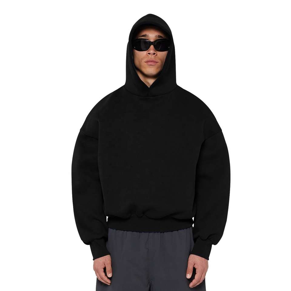 Sudadera con Capucha Corta de Algodón 100% de Alta Calidad OEM, Personalizada, de Peso Pesado 450 Gsm, con Hombros Caídos, Logo Frontal en Blanco, Estilo Boxy, Negra para Hombre