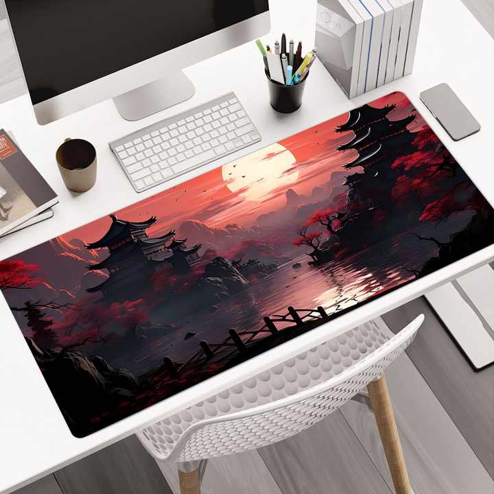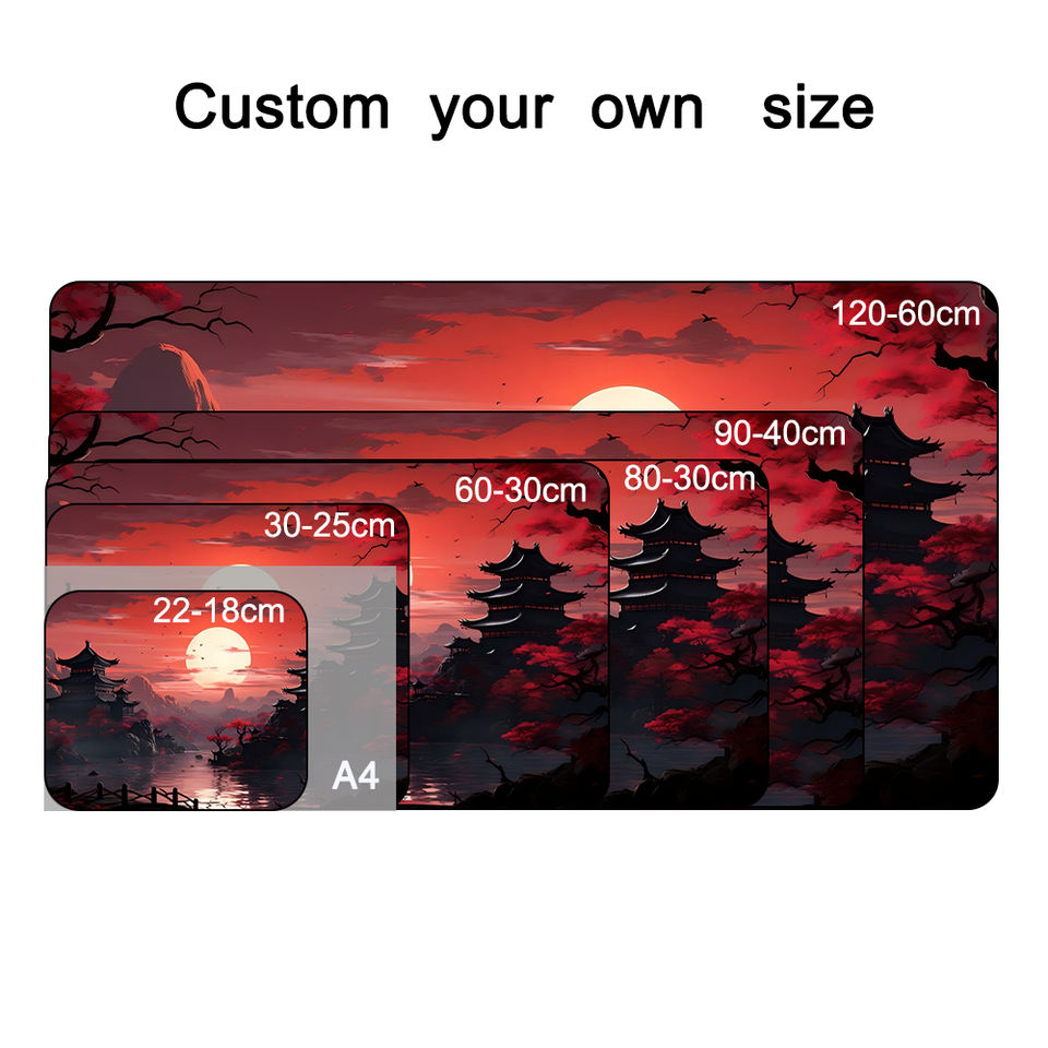 Alfombrilla de Ratón de Estilo Japonés Roja y Negra con Impresión a Todo Color de Alta Calidad OEM, Alfombrilla de Escritorio Grande Impermeable para Juegos