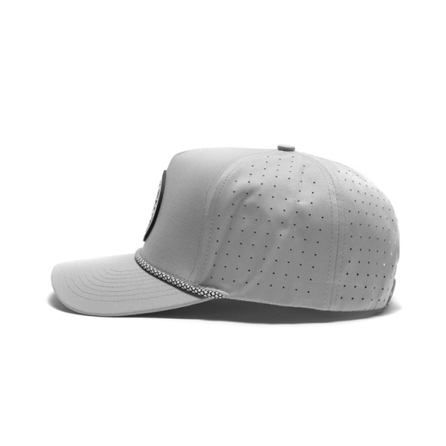 Sombrero de camionero de Golf de 5 paneles estructurado con logotipo de Parche de goma personalizado resistente al agua de alta calidad OEM, agujeros cortados con láser transpirables para deportes