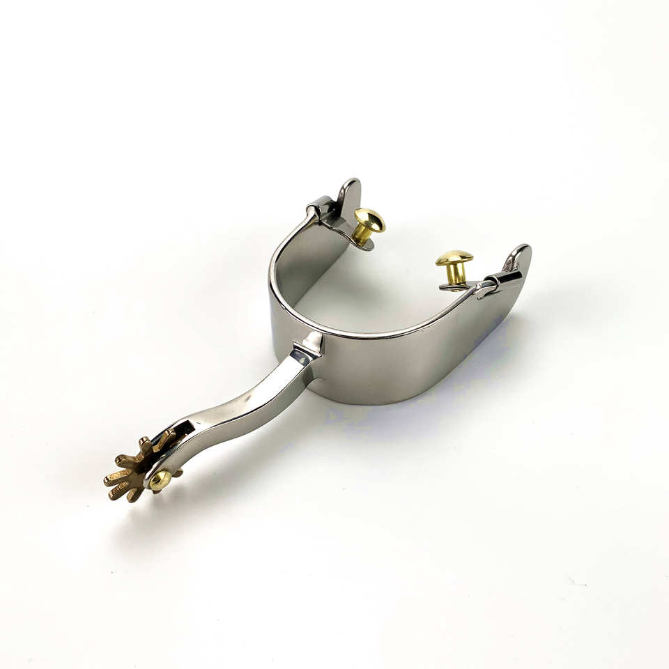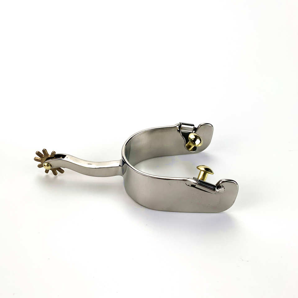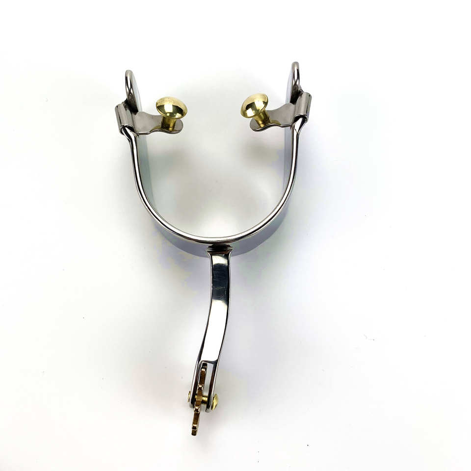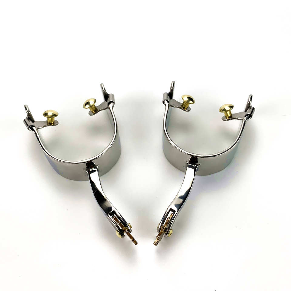 Espuelas de equitación occidental OEM de acero inoxidable con vástago largo y botones, diseño de tamaño personalizado, espuelas de equitación ultraajustables