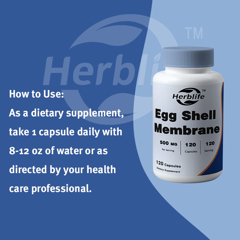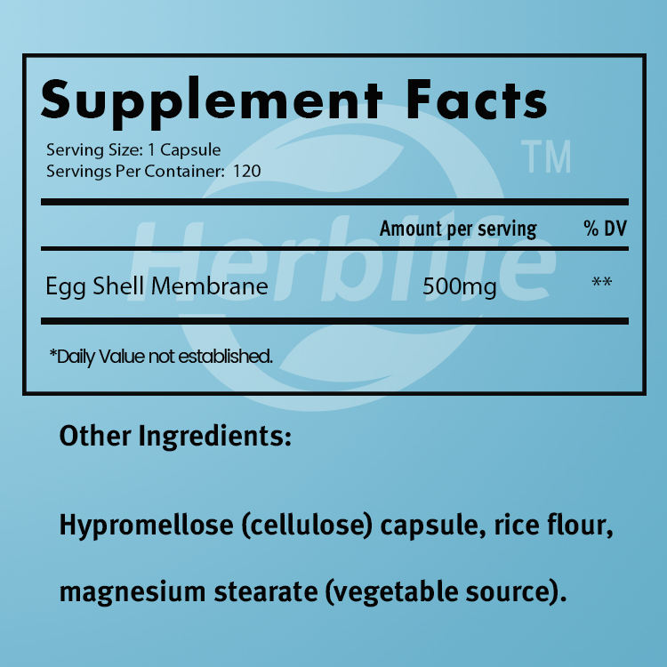 Membrana de Cáscara de Huevo, 500 MG por Porción, 120 Cápsulas - Sin OMG, Sin Gluten - Venta al Por Mayor, Personalizable