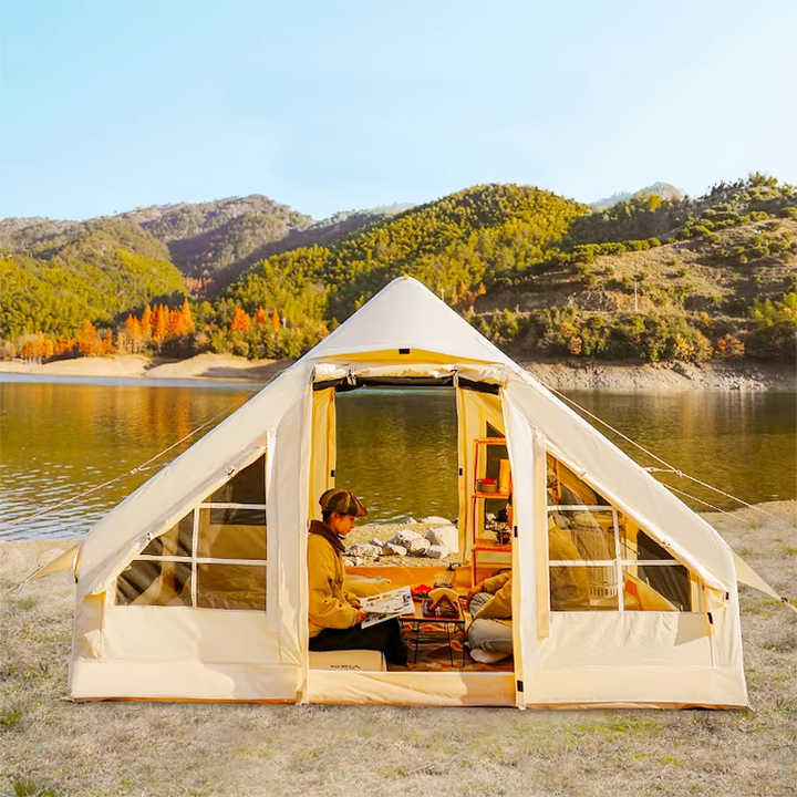 Carpa Inflable para Acampar OEM de Doble Capa, Una Habitación, Impermeable, para 3-6 Personas, Fácil de Instalar, Portátil y Duradera