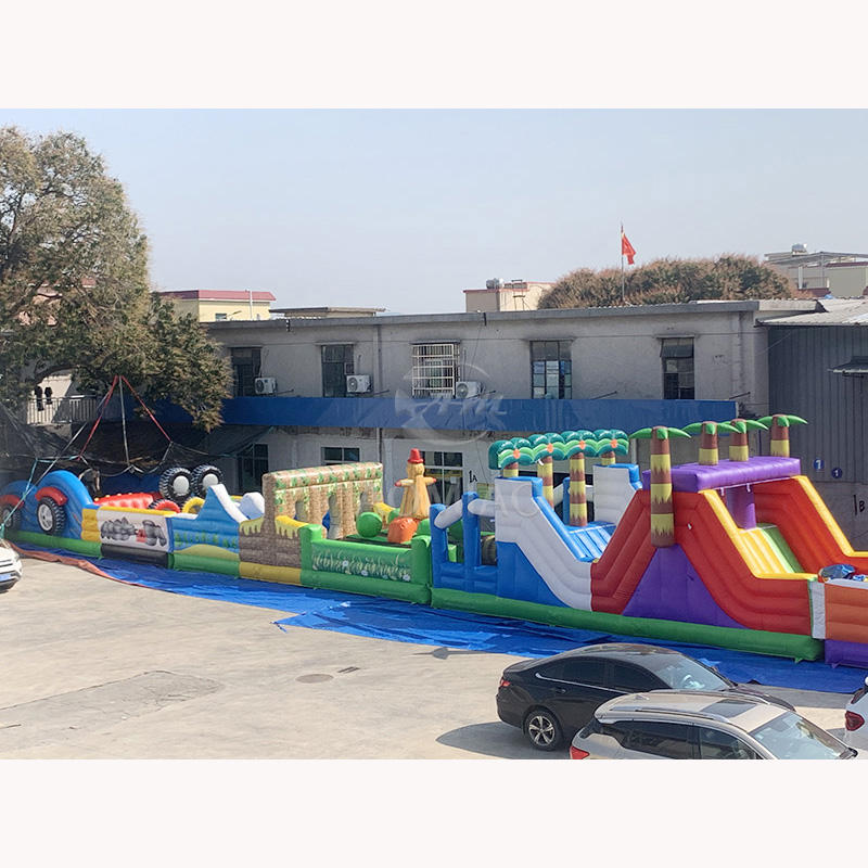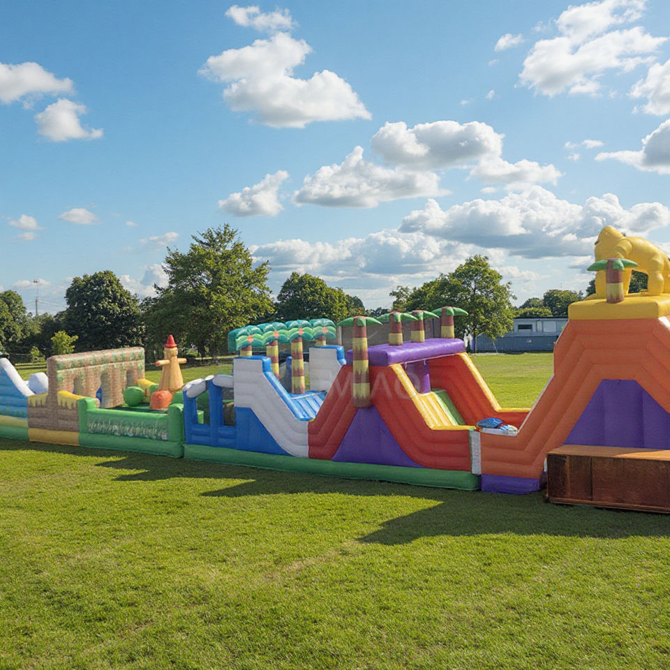 Castillo Inflable Combinado con Obstáculos, Diseño de Isla Jungla, Material de PVC, Capacidad de Más de 10000 kg para Más de 20 Pasajeros