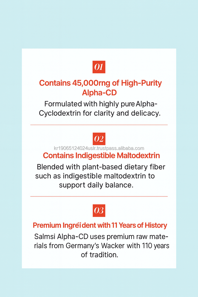 Ingrediente principal (2):45.000 mg de alfa-CD de alta pureza
