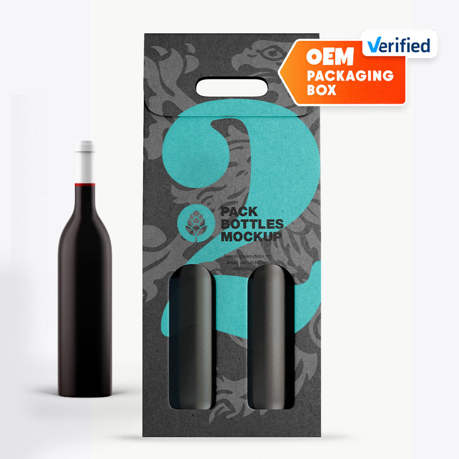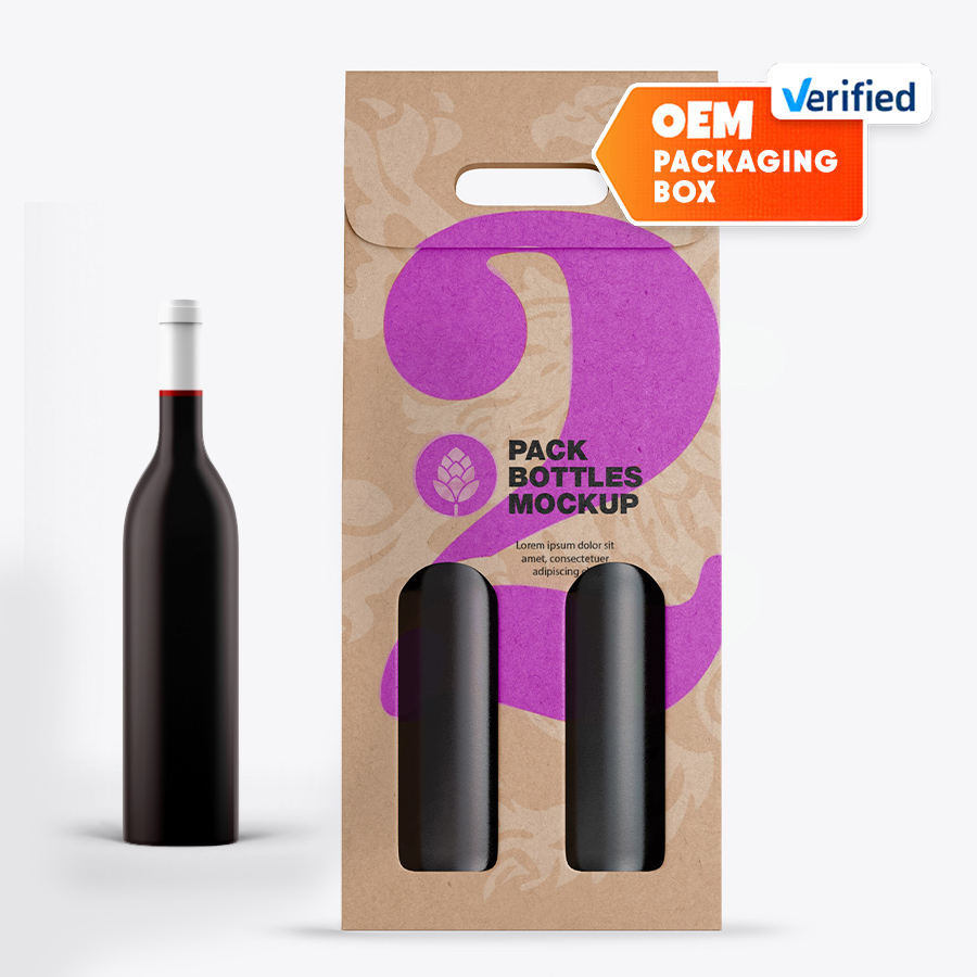 Cajas de vino Kraft OEM con embalaje de asa con cierre de tapa superior de apertura amplia y diseño de troquelado de ventana