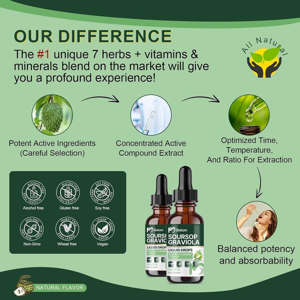 Guanábana Graviola, Musgo Marino, Cúrcuma, Vitaminas, Pimienta Negra, Zinc.Ingrediente principal