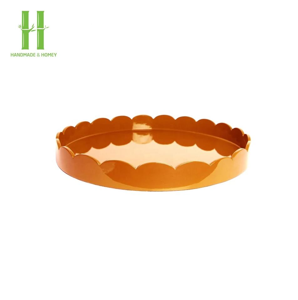 OEM bambú laca lujo pintado a mano bohemio ecológico festoneado bandeja para servir Mesa centros de mesa decoración hecha a mano HNH