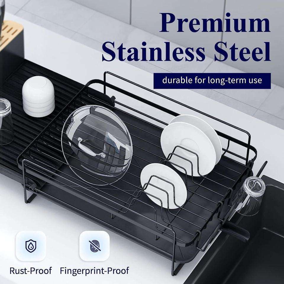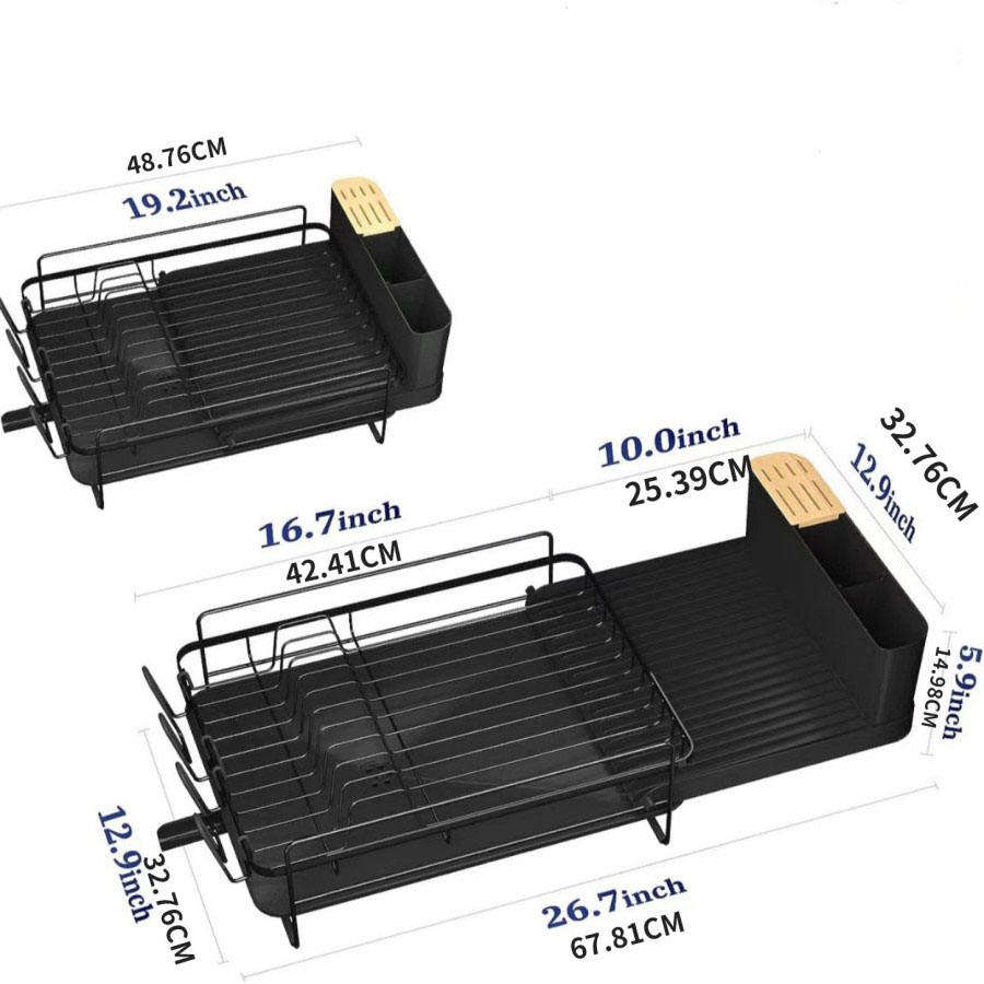 Escurridor de Platos Multifuncional Grande, Extensible, Antióxido, Negro, para Cocina