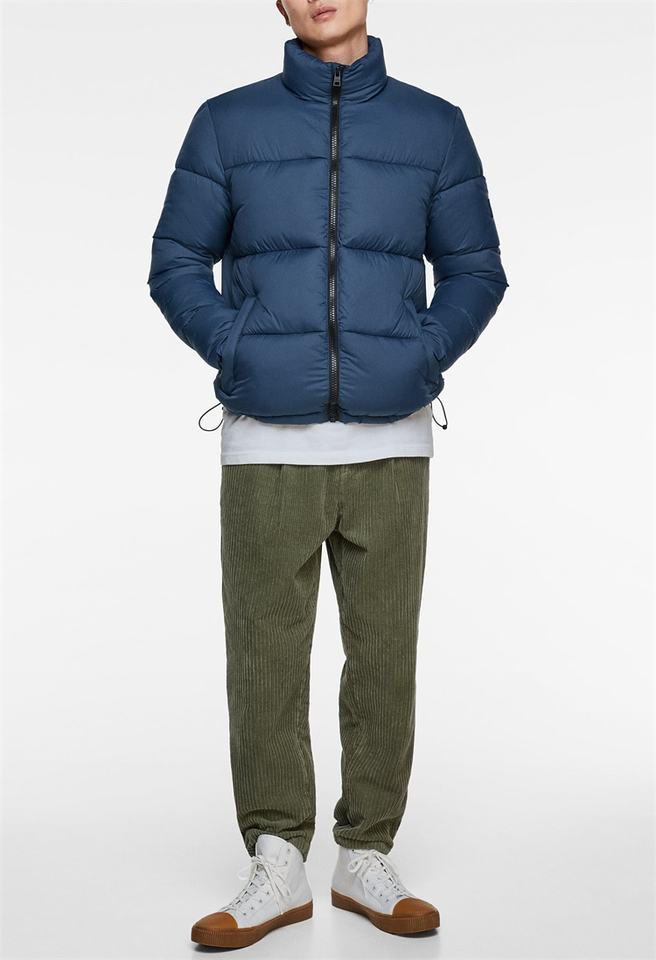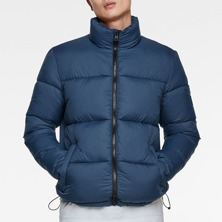 Chaquetas acolchadas de color azul sólido de último diseño OEM para hombre, chaqueta de burbuja acolchada con cuello levantado de tela de poliéster 100% para ropa de invierno