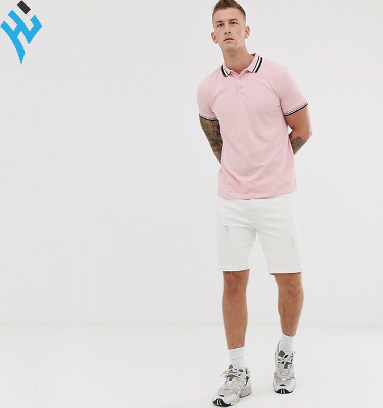 Camiseta lisa de manga corta con rayas para hombre y mujer, camisa de estilo personalizado de alta calidad, diseño Simple de ocio, en blanco y rosa, con cuello tipo Polo