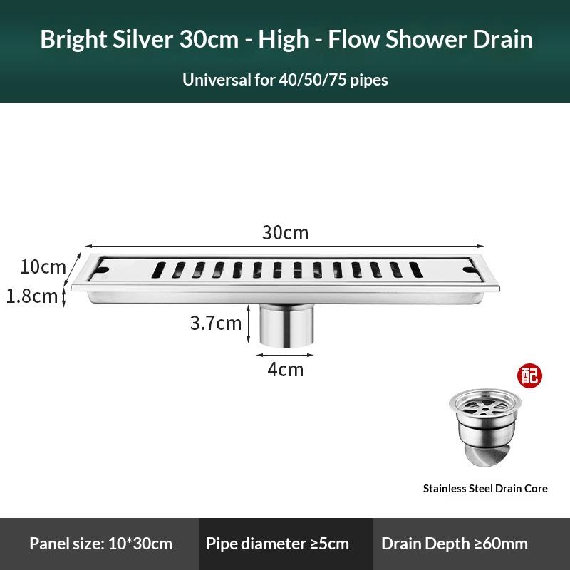 OEM Long Rectangular Floor Drain Bathroom Made Thickened 304 Stainless Steel High Drainage Capacity Odor-proof Hotel