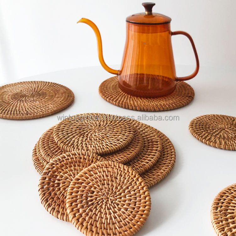 Mantel redondo de estilo lujoso OEM y cargador de Mantel tejido a mano jacinto de agua ecológico nuevo estilo Color Natural