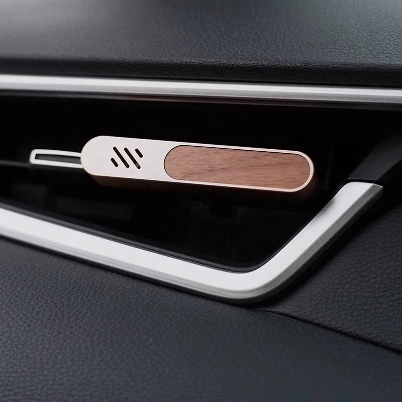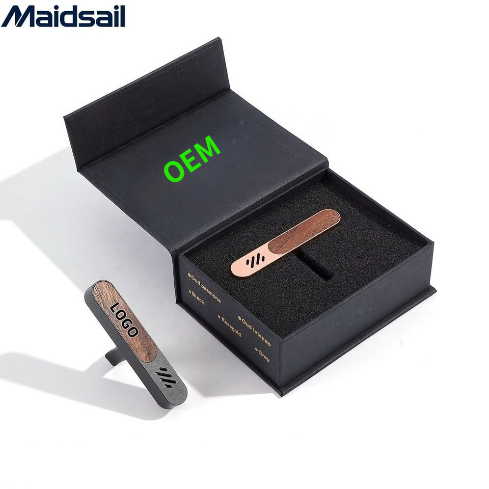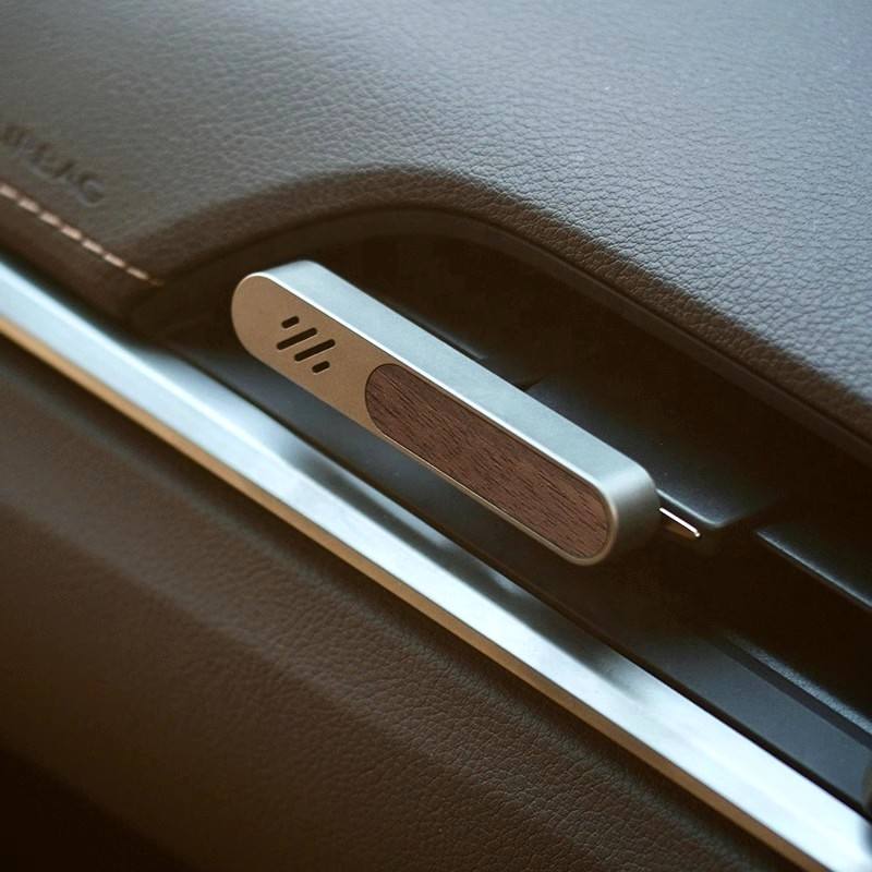 Difusor de Aromaterapia Líquida de Lujo OEM para Coche, Ambientador Portátil Colgante de Madera, Barra Moderna de Metal Recargable con Energía Solar